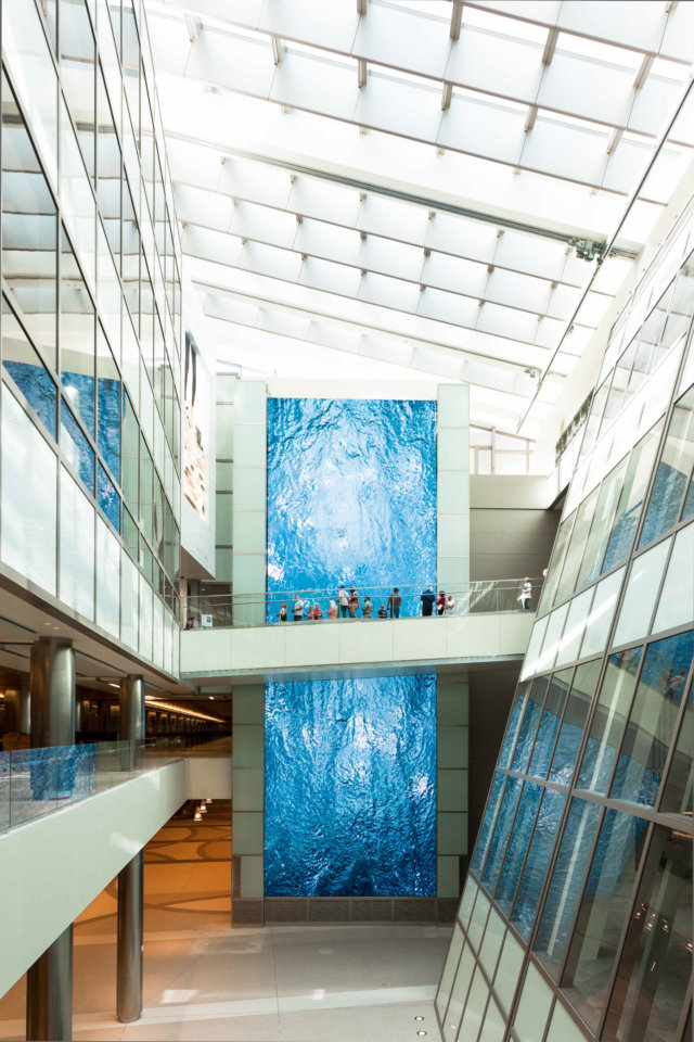 The Departure Hall now features The Wonderfall, a four-story digital waterfall that invites travelers to pause and admire the magic of nature. Nestled between vertical gardens, a curved LED screen showcases a mesmerizing cascade of water and rock formations. Multiple times an hour, travelers witness a surreal choreography as the flow dramatically reverses course for a 3 1/2-minute show set to a bespoke composition by pianist Jean-Michel Blais.