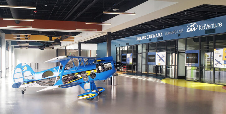 The EAA recently unveiled a new Education Center at their Oshkosh, Wisconsin headquarters. The two-story, 30,000-square-foot facility is designed to further develop aviation education and training. The $6.2 million project features an innovative Pilot Proficiency Center, a hands-on Youth Education Center and the EAA Conference Center. The Pilot Proficiency Center features a state-of-the-art skill-building and training center featuring flight simulators for general aviation pilots. The 15,000-square-foot Young Education Center provides youths, parents and teachers access to interactive and project-based activities that inspire and nurture the next generation of aviators. The corporate events space features small conference rooms and a larger events space that can be configured based on the size and requirements for private events.