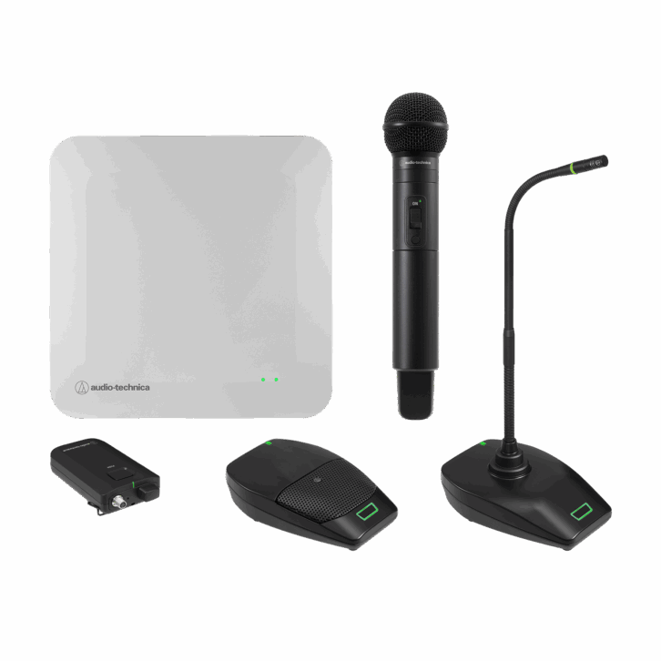 This DECT wireless microphone solution was specifically designed for conferencing, videoconferencing, corporate AV integration, and hybrid workspaces. It is available in two configurations: ESWR4180DAN (Dante-enabled) and ESW-R4180LK (Audio-Technica LINK-enabled). The system utilizes DECT technology to resolve common wireless audio challenges, including frequency interference and limited simultaneous microphone usage. Microphones activate instantly upon removal from their charging stations, offering allday battery life for extended conferencing sessions. Installation is streamlined via PoE to power receivers and audio output via a single Cat 5e cable. Detailed system settings can be configured by integrators to meet diverse end-user needs. Centralized control is through Audio-Technica’s Wireless Manager software and the system is protected with AES256 encryption. It supports up to 96 simultaneous channels, automatic frequency coordination, and scalable flexibility.