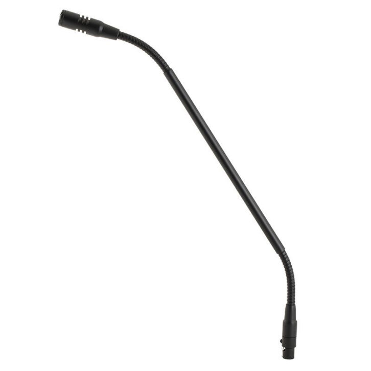 The DPA 4098 line of gooseneck microphones has so many variants that there has to be one in a perfect stem length for any conference facility. Fitted with MicroDot or XLR-3M connectors, these ideally run on 48VDC phantom power and deliver 20Hz-20kHz frequency response with a supercardioid pickup pattern. The XLR-3M version offers stem lengths from 8in. to 48in., and the mics are available in black or white