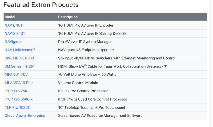 The Extron NAV Pro AVoIP system replicated all the functionality of the existing twisted pair AV matrix switching system and provided enhanced scalability via LinkLicense®. The selected LinkLicense upgrade enables the NAVigator system manager to support as many as 48 endpoints, which was within room requirements. A NAV encoder is installed with the switcher at each station, and a NAV scaling decoder is mounted to the back of each display. The NAVigator provides secure, user friendly browser-based system management and also facilitates advanced system configuration and easy troubleshooting.