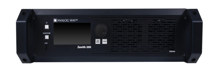 Multi-screen presentations pose a challenge for the most seasoned lecturers, but the Analog Way Zenith 200 4K60 presentation switcher and videowall processor can make it look easy. With 16 inputs and 6 outputs, the 2RU unit offers sophisticated video effects and an HTML5-based user interface. This device can mix and split layers while putting a live or still image background on all PGM outputs