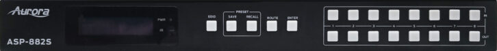 Functionally sophisticated for commercial use yet operationally straightforward to suit high-end home theater, the Aurora Multimedia ASP-882S 8×8 4K60 HDMI matrix switcher de-embeds digital and analog audio on each output. It also offers more output flexibility with 4K-to-1080p downscaling and ARC audio from the connected displays. Control capability includes front panel OLED screen and IR remote along with RS-232, LAN, and Web GUI.