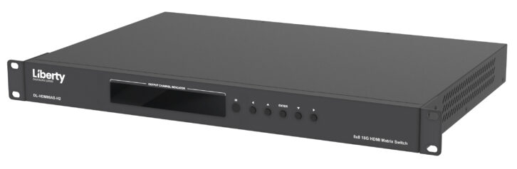 If a smaller, single RU 8×8 matrix is required, the Liberty AV DigitaLinx Series DL-HDM88AS-H2 8×8 HDMI 2.0 Matrix Switch is available with automatic 4K to 1080P downscaling and digital/ analog audio de-embedding on all outputs. It also provides smart EDID management on each port. Beyond front panel controls, there is also TCP/IP, RS-232, IR, and WebGUI operation