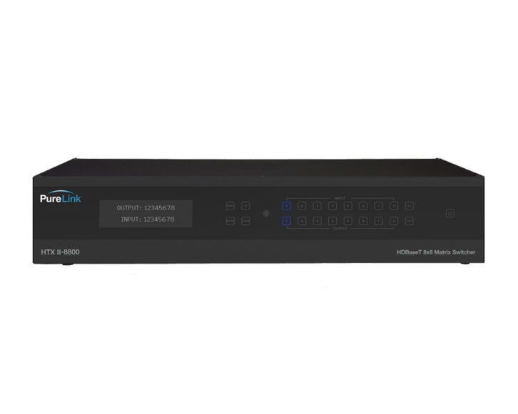 Fitting into a single rack space and handling 8×8 HDMI inputs with 2 HDMI outputs, along with 6 HDBaseT outputs, the PureLink HTX II-8800 has PoC on all HDBaseT outputs. Also onboard is a sophisticated audio switching matrix 16 audio outputs and 22 audio inputs. Each HDMI input port can take video resolutions up to 4K/60. The unit’s capabilities also include pass-through audio up to 7.1 channels of HD sound.