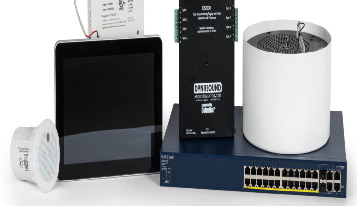 The DynasoundPro Networked system from Cambridge Sound Management is the only sound masking system that allows each speaker to be individually controlled remotely via software, which dramatically improves the uniformity of sound masking coverage. Power is delivered through standard Ethernet cable to a small signal processing box, the DS8000, installed in the ceiling. Each DS8000 has 8 speaker outputs. A music and paging interface can also be added to the system, allowing masking, paging, and music all to be controlled at the individual speaker level.