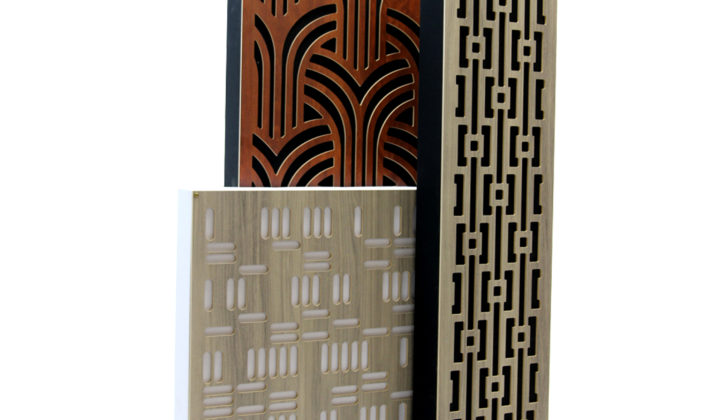 Acoustics First made their Tone Tile acoustical panels to be paintable so they can be perfectly matched to the room décor in their environment. As decorative as they are functional, each panel has an acoustical core of 1in. Fiberglass 6 PCF added to molded fiberboard with resin hardened square edges. They are rated Class A per ASTM E 84 and are mounted with impaling clips or other mounting options. The panels can also be mounted with 2in. stand-off clips to increase the low frequency absorption by providing an air gap behind the panel. Back lighting can be placed in the air gap to further enhance the decorative effect.