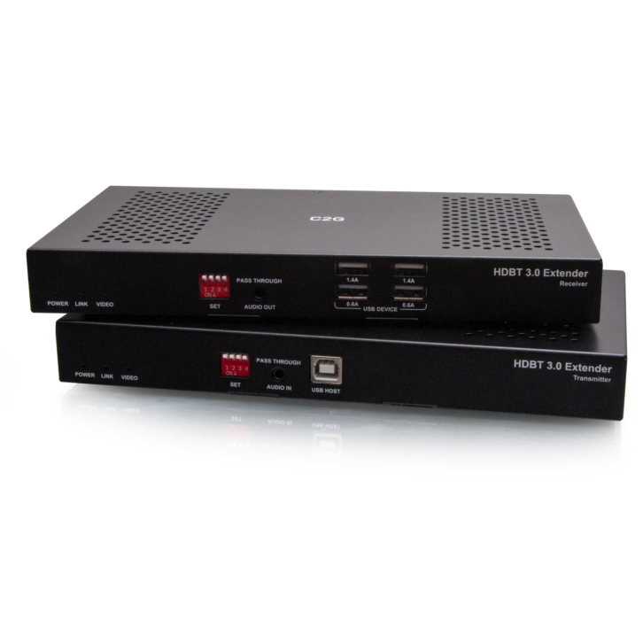 Photo Caption: C2G HDMI HDBaseT + USB-B to A and RS232 Over Cat Extender extends a