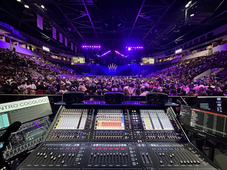 Singer, composer, rapper, entrepreneur, activist—all those descriptives and more characterize Maluma, the Latin Grammy Award-winning, Colombian-born entertainer. Add to that list “technology savant,” because DiGiCo Quantum338 consoles are an integral part of his ongoing Don Juan world tour, the North American leg of which runs from August 31 in Sacramento to November 4 in Miami. In fact, the tour relies heavily on the best tech, including Clair Global’s Cohesion series PA system, as well as other DiGiCo products, including SD-Racks, an Orange Box, DMI-Waves cards, and a complete Optocore network loop. But the Quantum338 consoles, used at both front of house and monitors, are the central hubs for a complex but reliable audio infrastructure that performs at every show as flawlessly as Maluma himself.