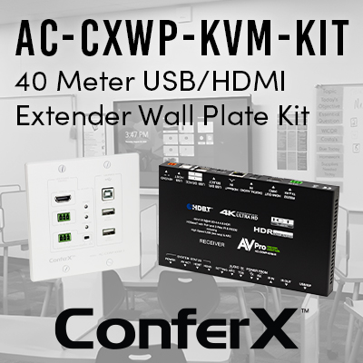 ConferX introduces a new dual-gang USB/HDMI wall plate transmitter and receiver kit ideal for the classroom and conference room.