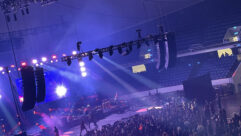 Two full size MIDAS Pro 2 consoles handle both FOH and stage systems with two MIDAS DL233 48×48 double pre-amp stage box, four 12-channel EMG drop snakes for up stage and down stage, and two spare CAT5e lines are run from stage to front of house position for signal distribution.