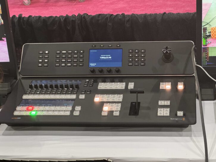 At the end of the pink carpet was World of Wonder Productions’ video village, featuring a host of Blackmagic Design gear, including an ATEM Television Studio 4K8 which served as the main switcher for live streaming the event in conjunction with a Blackmagic Web Presenter 4K. Five Blackmagic URSA Mini Pro 4.6K G2 digital film cameras stationed around the pink carpet were fed into the ATEM via SMPTE cabling with Blackmagic Studio Fiber Converters and Blackmagic Camera Fiber Converters for control and power.