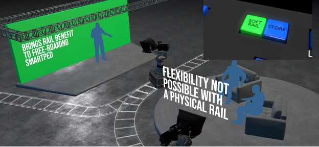 For other parts of the production, or when designers want a set change, the SoftRail mode can be disabled easily allowing the SmartPed to immediately revert to normal free-roaming behaviour. Unlimited SoftRail paths can be stored and recalled, and different SmartPeds can have separate (or the same) rails active, all easily managed from the new and enhanced StudioView page within the latest TR-XT control system.